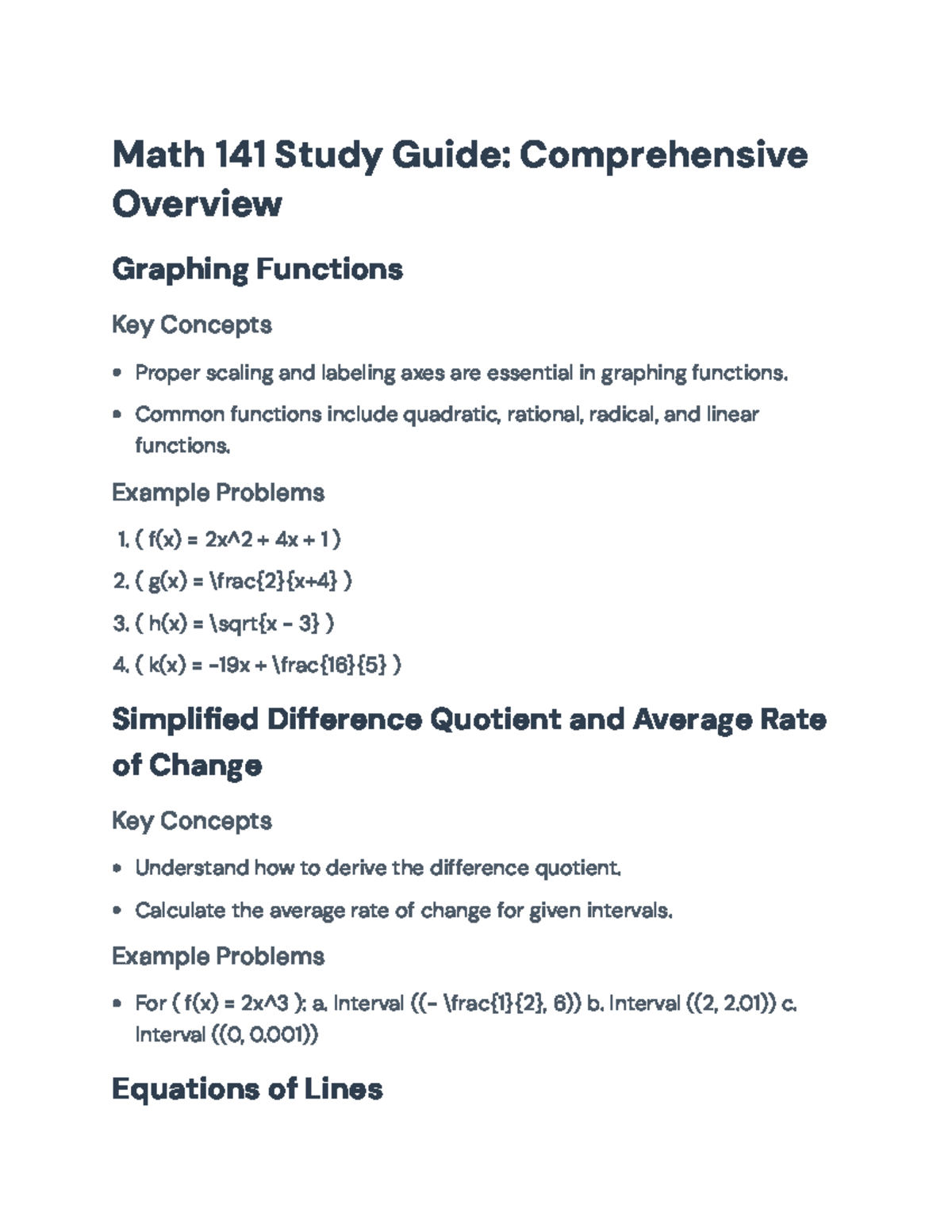 Math 141 Study Guide: Key Concepts and Example Problems - Math 141 ...