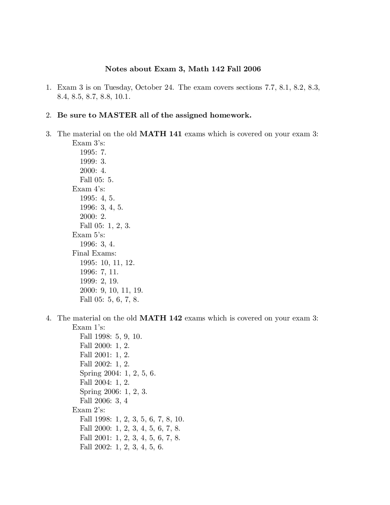 Math 142 Final Exam Sample Questions