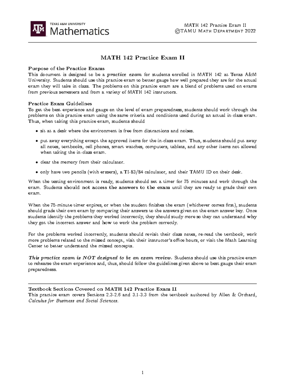 MATH 142 Practice Exam 1.pdf - MATH 142 Practice Exam I ©TAMU Math ...