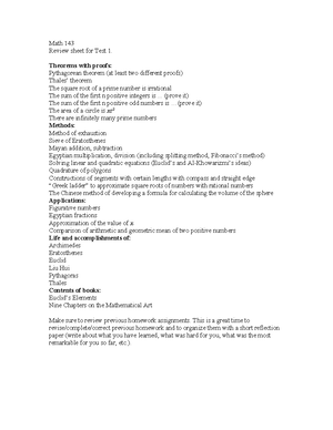 Math 143: Review Sheet for Test 1 with Key Theorems and Methods - Math ...