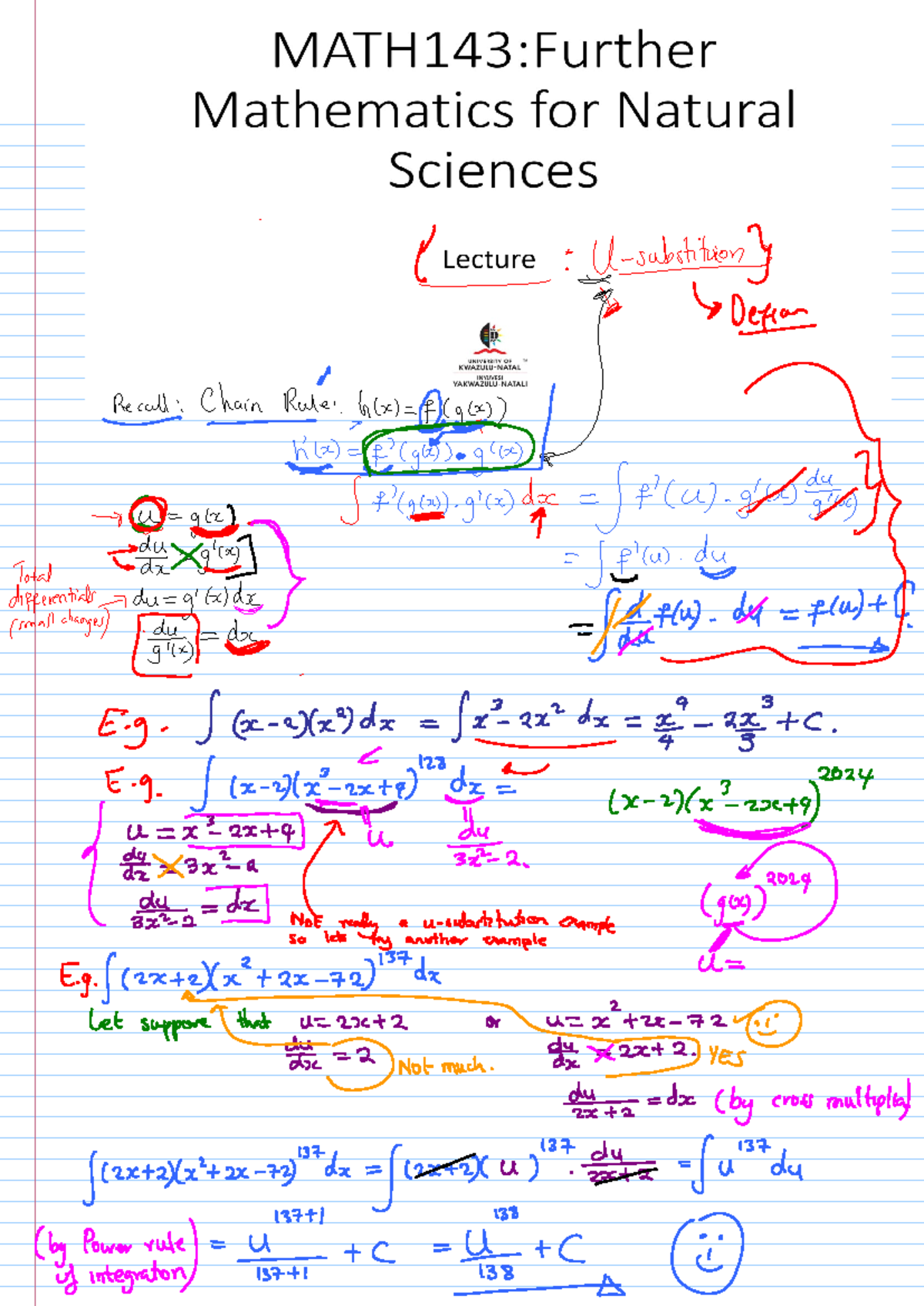MATH143: Further Mathematics for Natural Sciences I Lecture - U ...