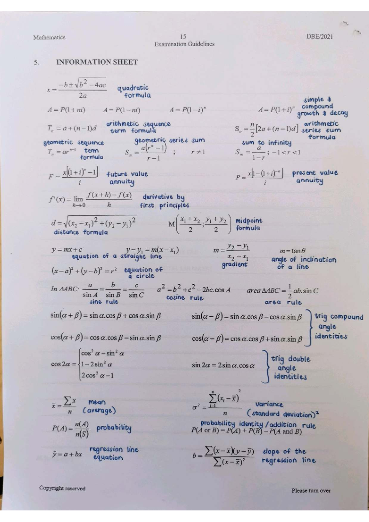 Mathematics 15 Final Exam Formula Sheet and Notes - Studocu