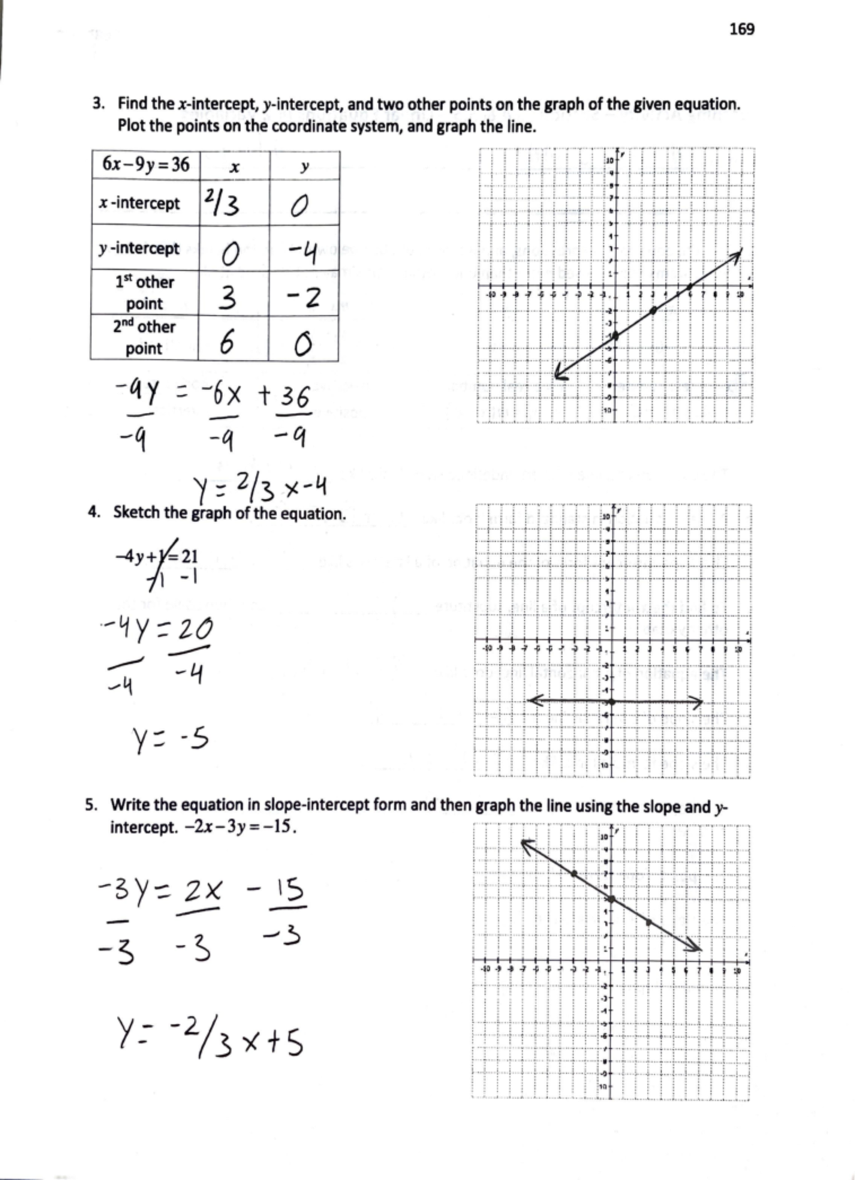 Adobe Scan Oct 4, 2023 - math - 169 3. Find the x-intercept, y ...