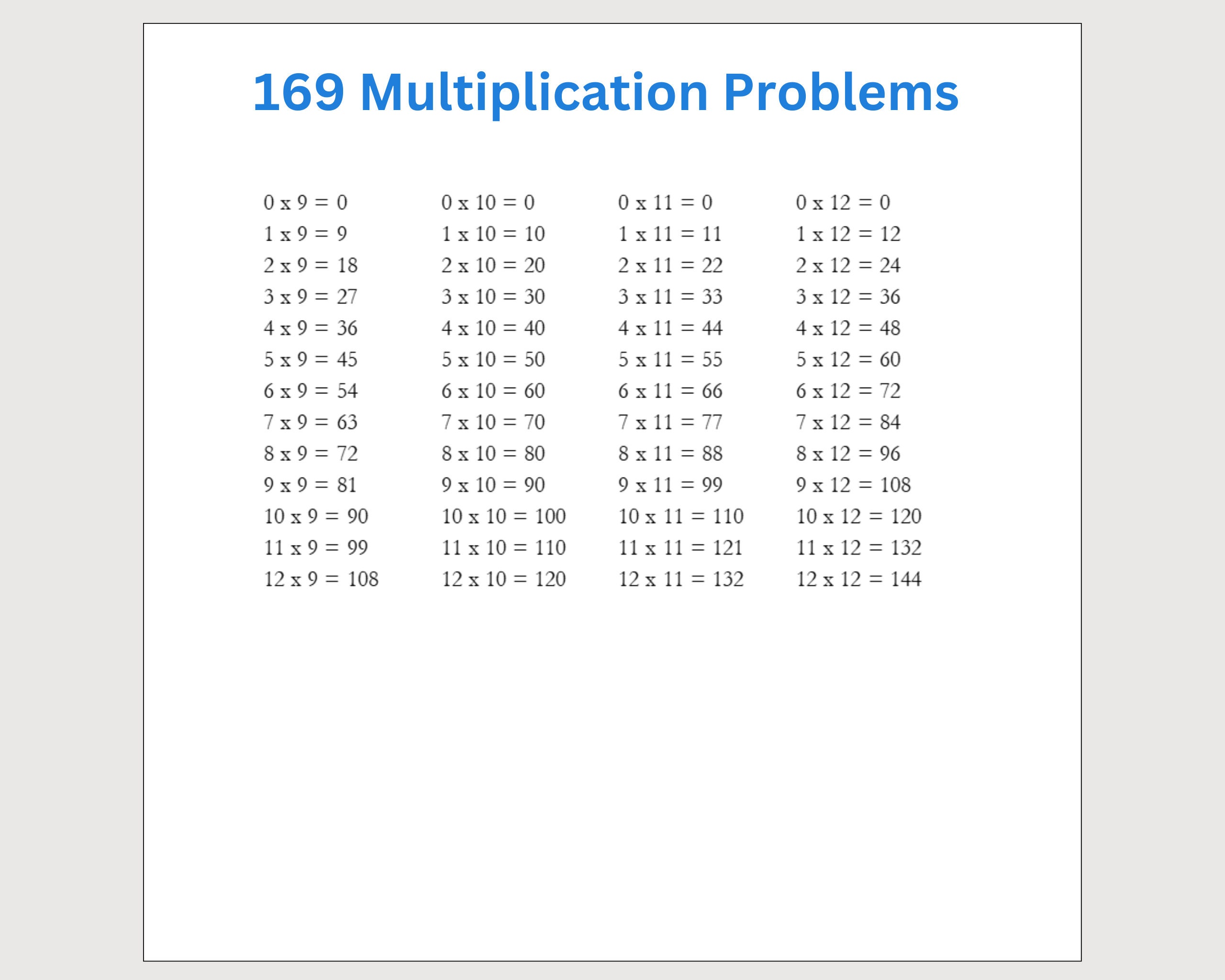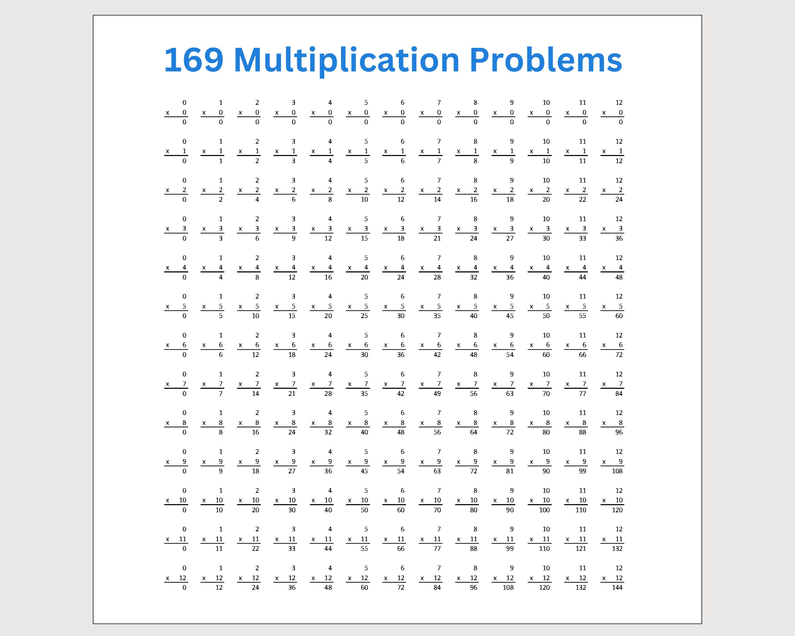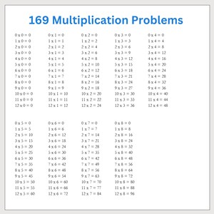 169 Multiplication Flashcards, Printable, Instant Download, Second ...