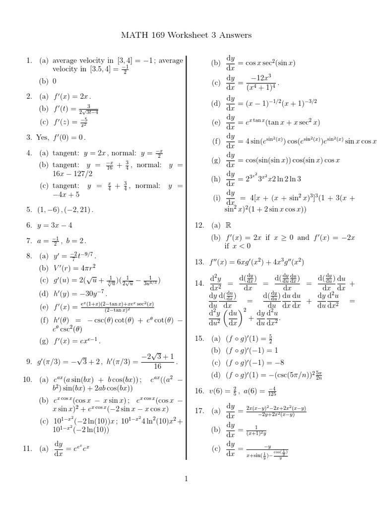MATH 169 Worksheet 3 Answers | PDF | Mathematical Analysis ...