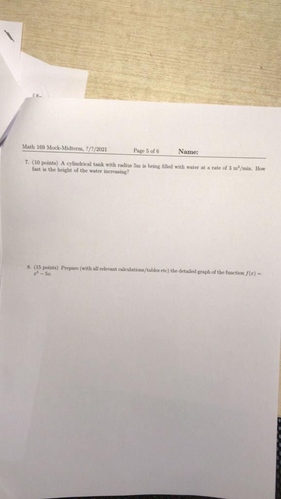 Solved Math 169 Mock-Midterm,?/?/2021 Page 5 of 6 Name: 7. | Chegg.com