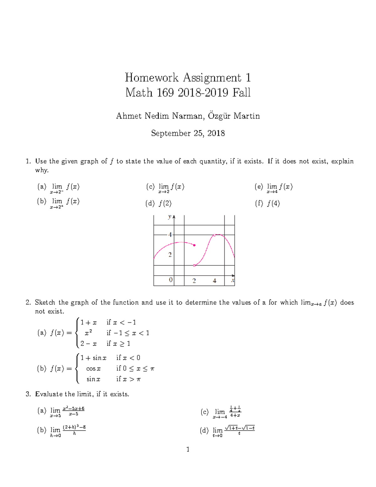 Math 169 Exam 1 - Limit Questions and Solutions (Jan 2018) - Studocu