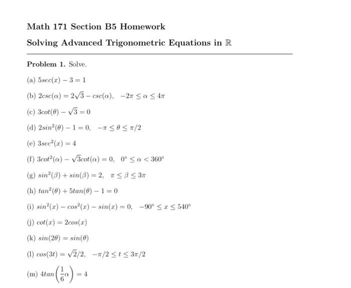Solved Math 171 Section B5 Homework Solving Advanced | Chegg.com