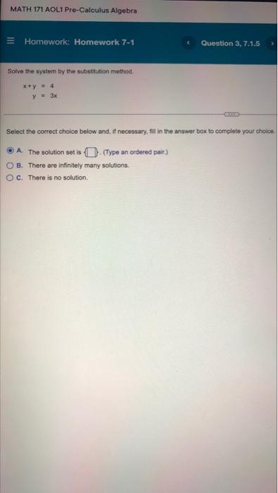 Solved MATH 171 AOL1 Pre-Calculus Algebra Homework: Homework | Chegg.com