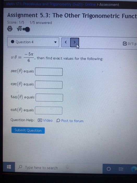 Solved Math 171: Precalculus and Trigonometry (Su20) - | Chegg.com