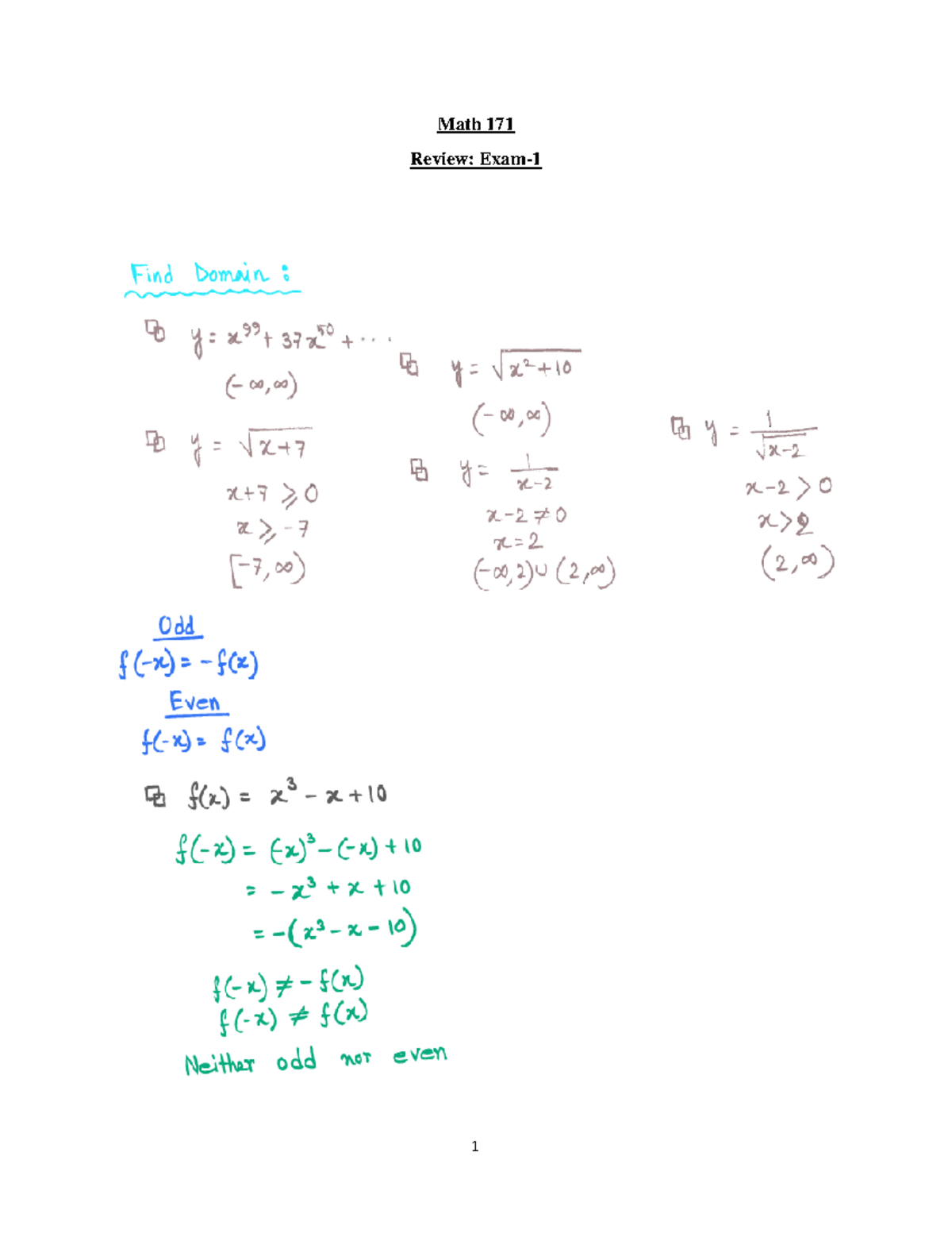MATH 171 Test 1 Sample Questions - Fall 2025 - Studocu