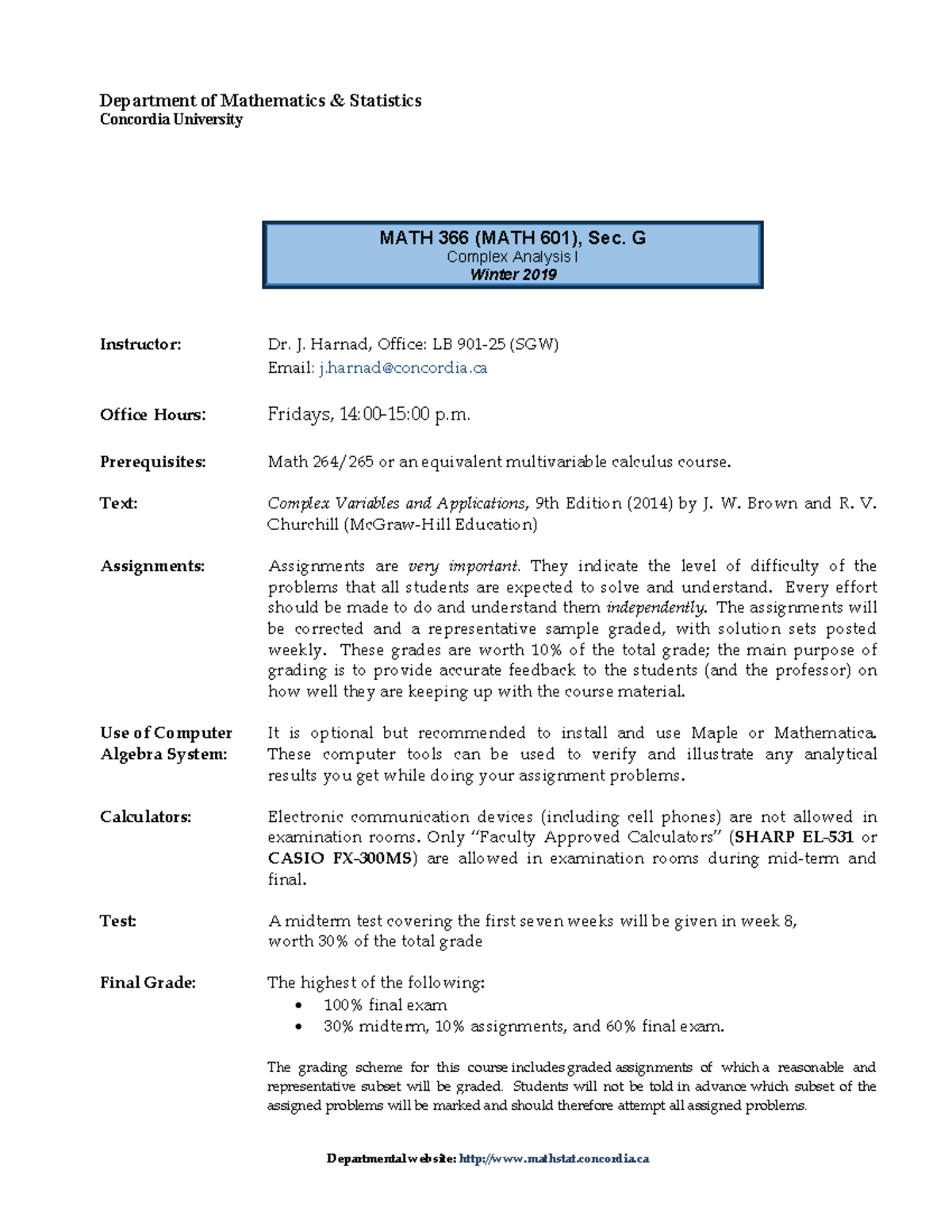 MATH 366 : Complex Variables I - Athabasca University, Athabasca