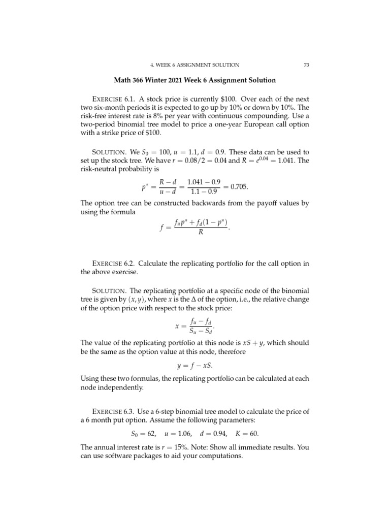 Math 366 Winter 2021 Week 6 Assignment Solution | PDF | Option (Finance ...