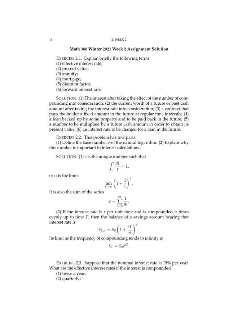 Math 366 Winter 2021 Week 2 Assignment Solution | PDF | Interest ...