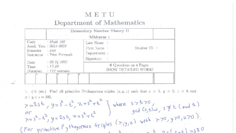 Math 366 Elementary Number Theory II Midterm 1 Solutions - Studocu