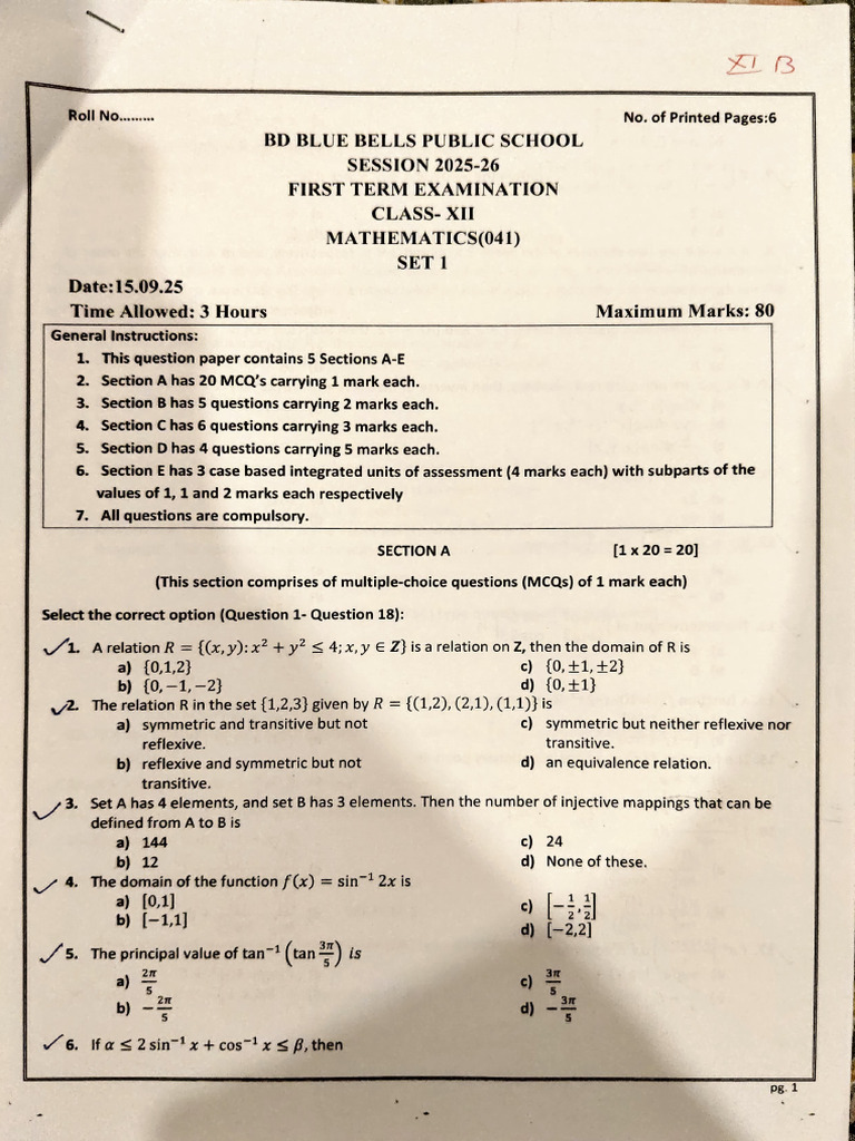 Mathematics First Term Exam | PDF | Function (Mathematics ...