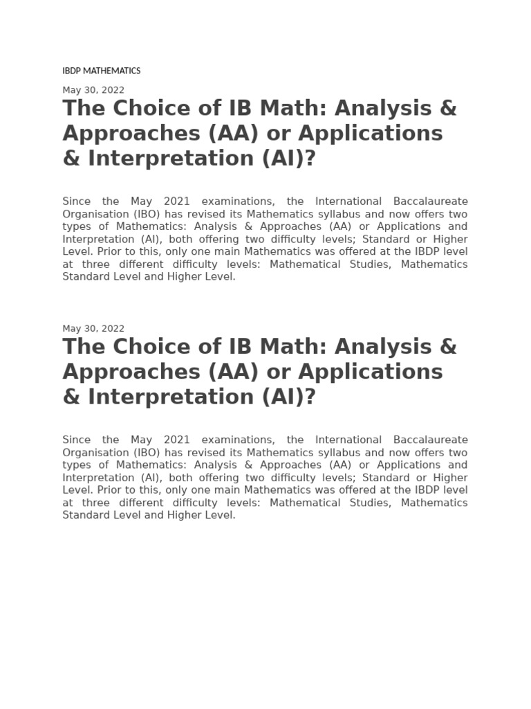 The Choice of IB Math: Analysis & Approaches (AA) or Applications ...