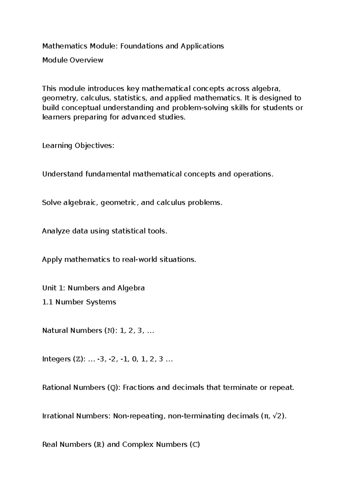 Mathematics Module: Foundations & Applications Overview (MATH 101 ...