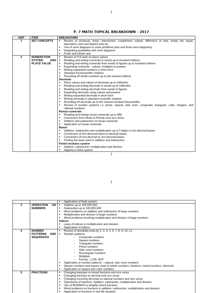 Primary five mathematics topical breakdown of lesson notes - MATHS TERM ...