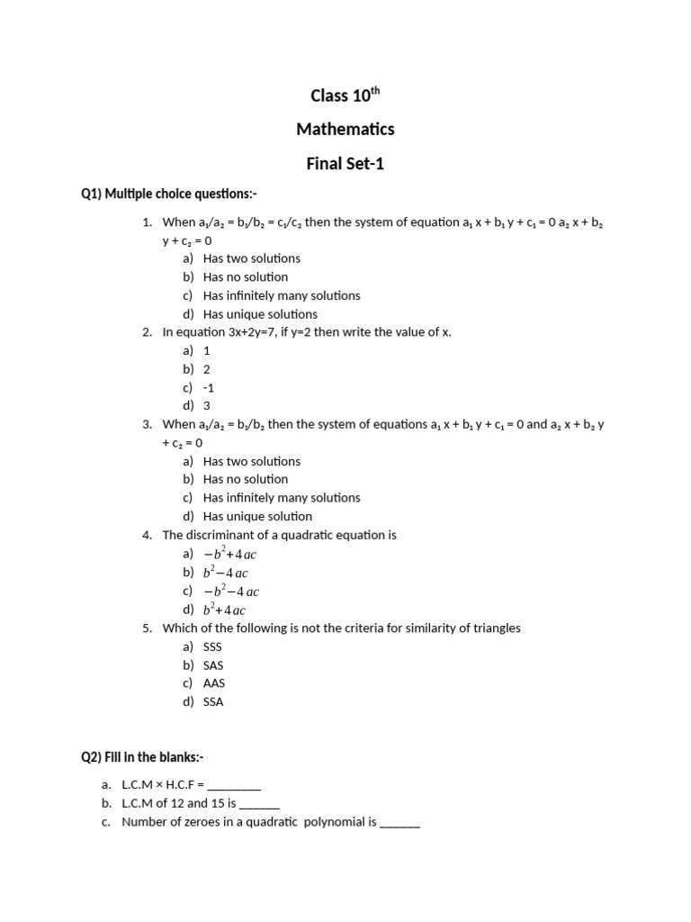Sample Paper For Math Class 10 at Jason Criner blog