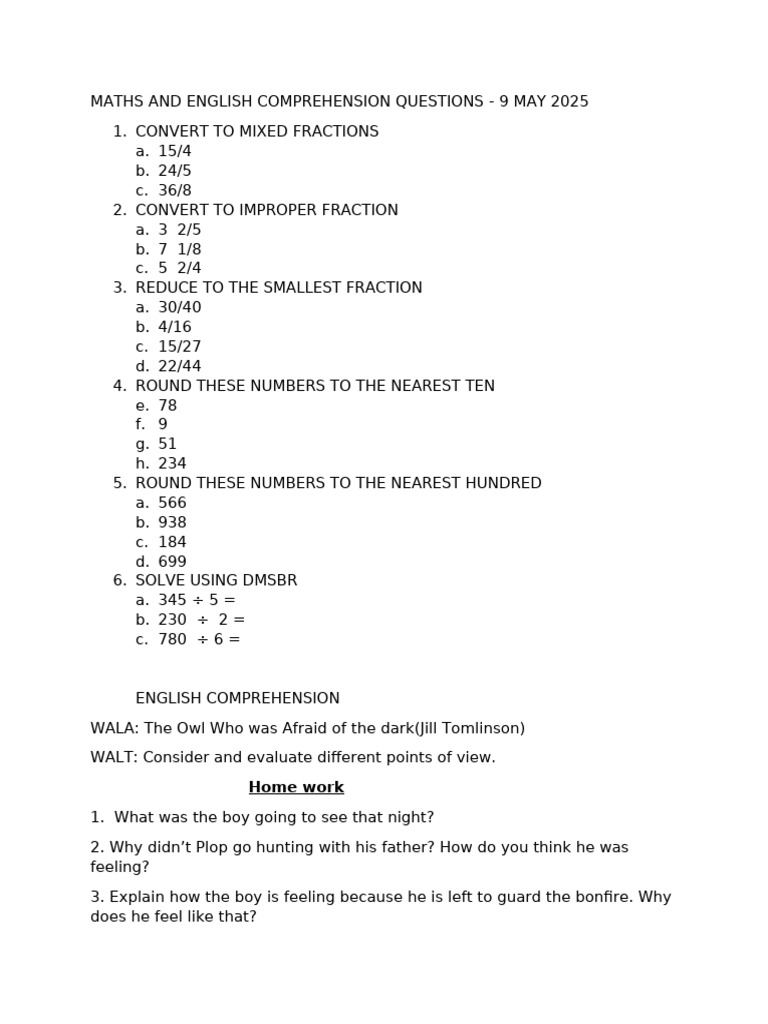Maths and English Comprehension Questions | PDF