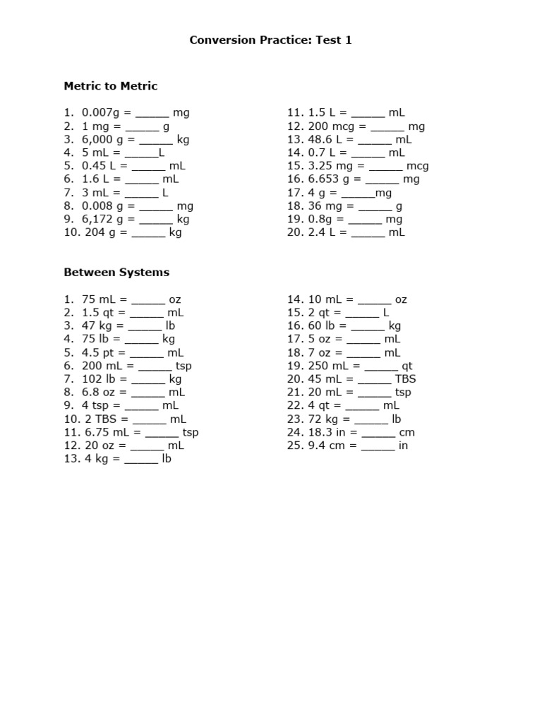 Conversion Practice, Test One | PDF