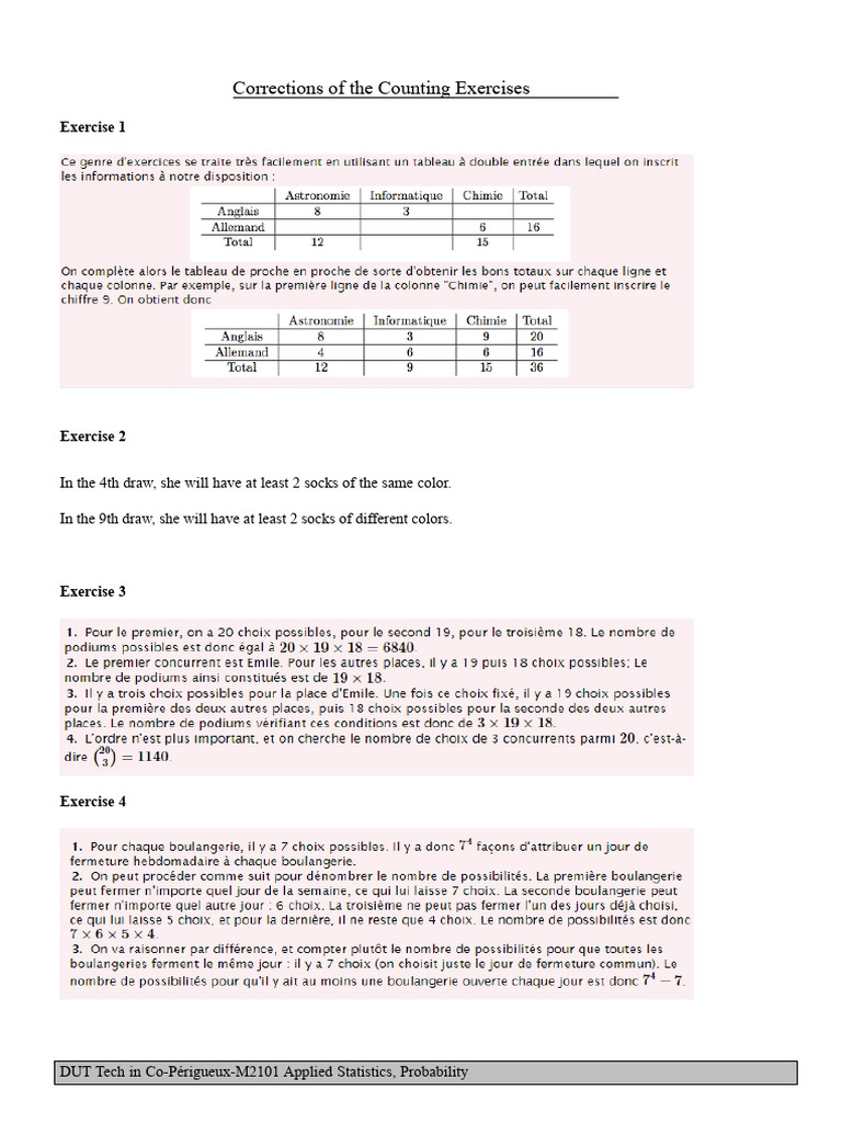Correction Exercise Sheet Counting | PDF | Permutation | Mathematics