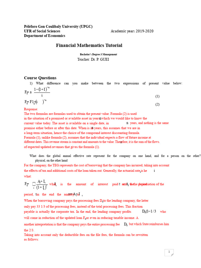 Math Correction TD End L3 MANAGEMENT - 2020 | PDF | Bonds (Finance ...