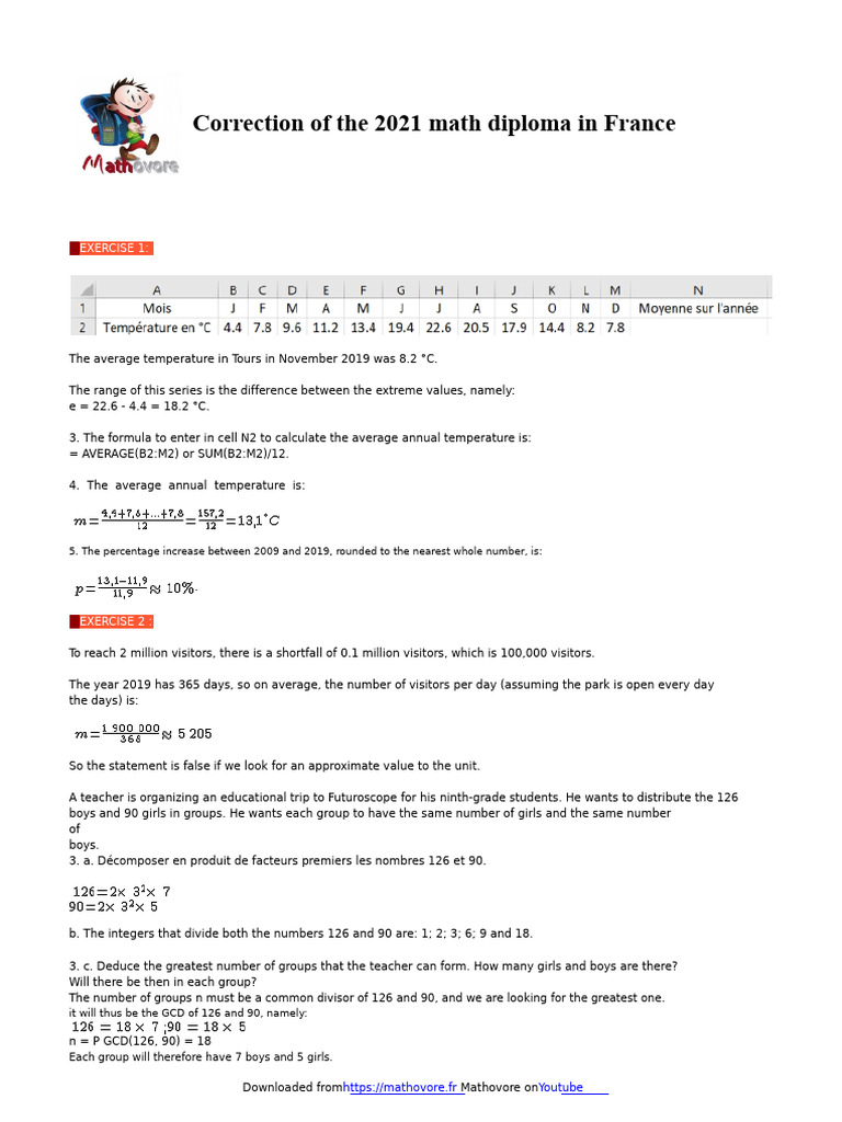 2021 Math Diploma Correction in France | PDF | Numbers | Mathematics