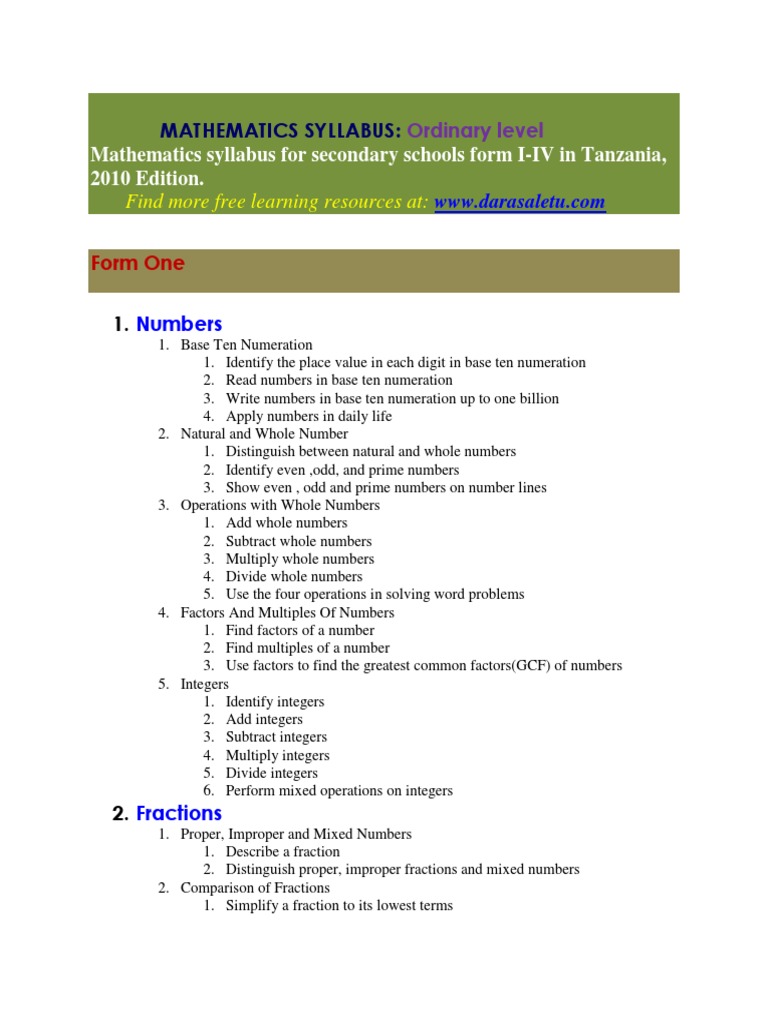 Mathematics Syllabus | PDF | Fraction (Mathematics) | Multiplication