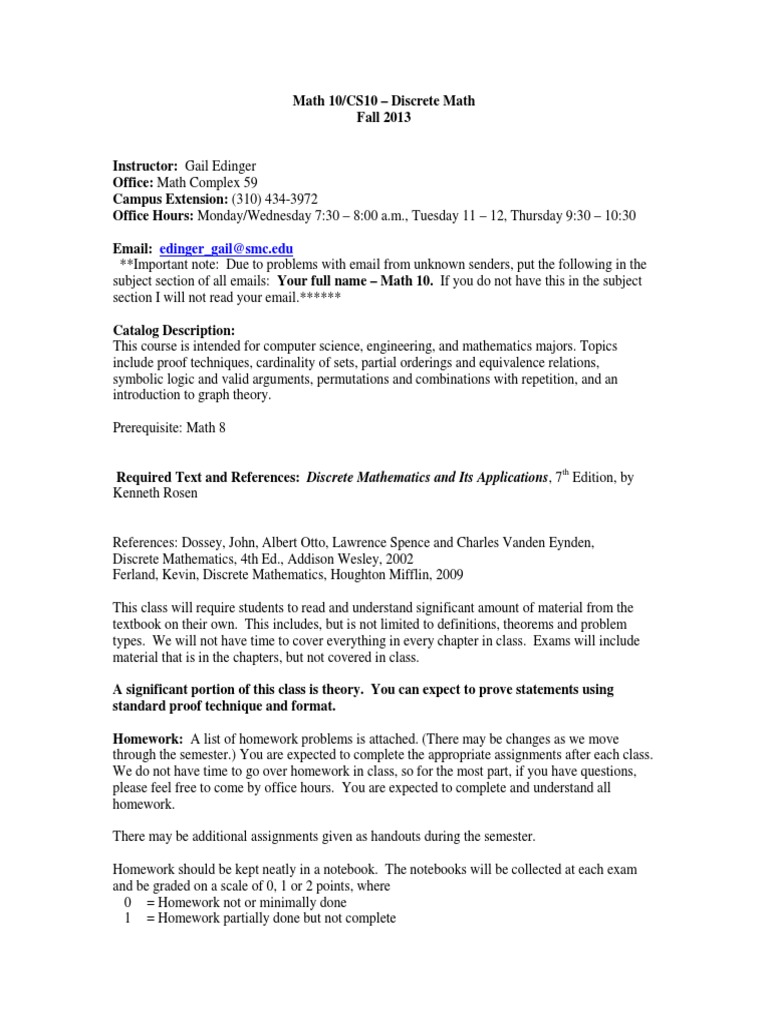 Discrete Math Course Syllabus Fall 2013 | PDF | Teaching Methods ...