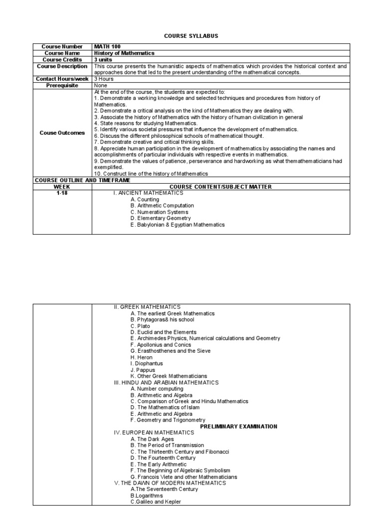 History of Mathematics Syllabus | PDF | Teaching Mathematics | Euclid