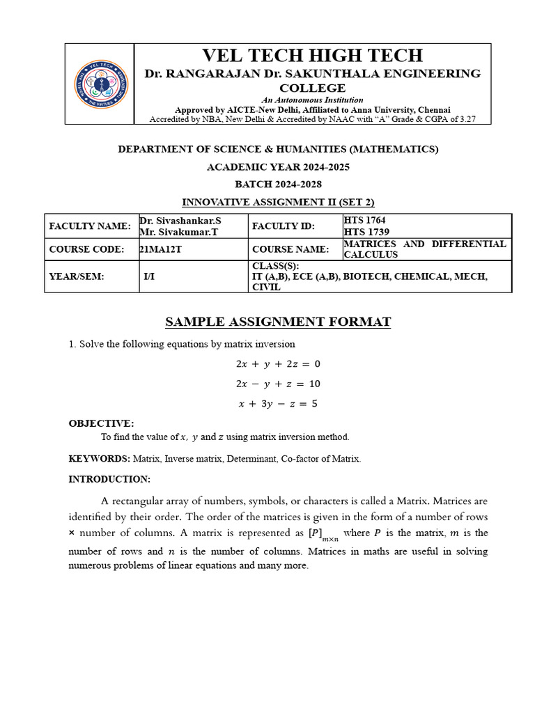 21ma12t Mat and Dif Eqtns Ia 2 Set 2 | PDF | Matrix (Mathematics) | Area