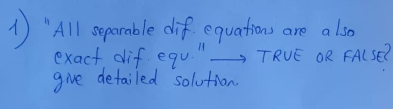 Solved "All separable dif. equations are also exact dif. | Chegg.com