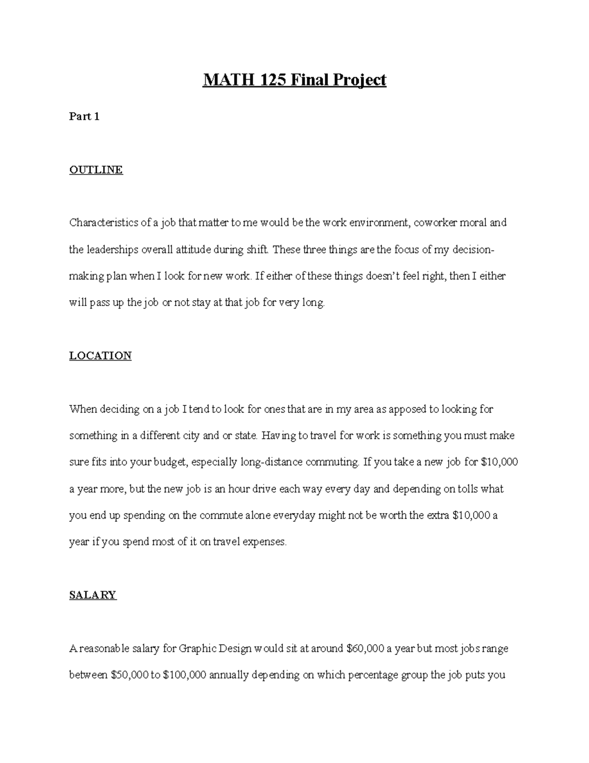 MATH 125 Final Project - A+ grade, use it as a reference but don't copy ...