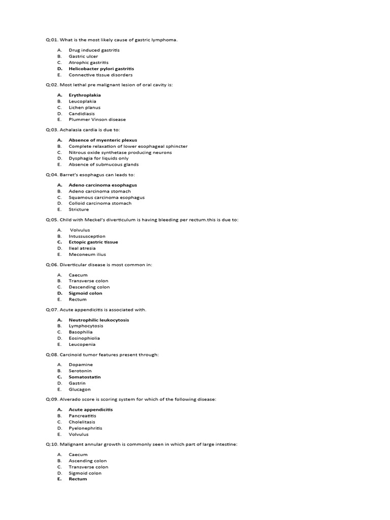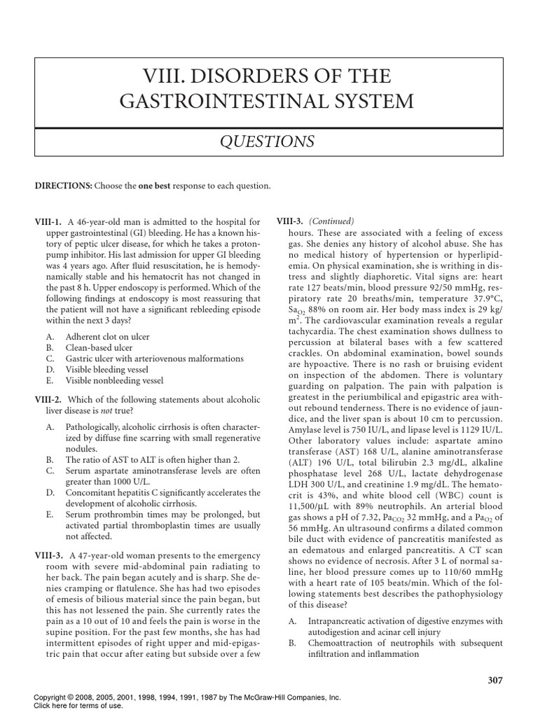 Viii. Disorders of The Gastrointestinal System: Questions | PDF ...