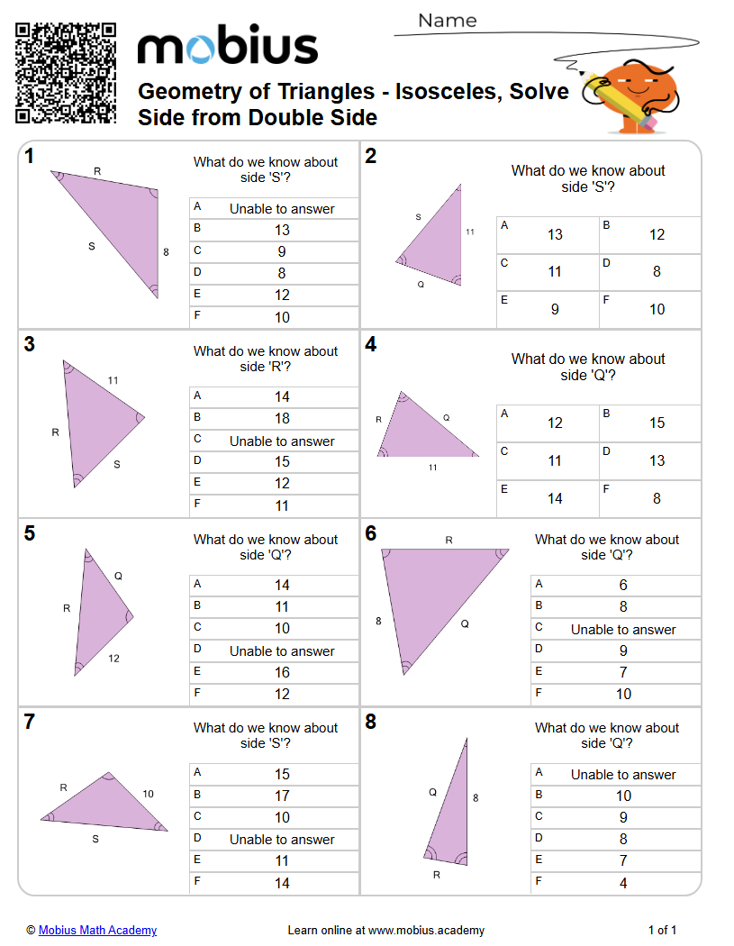 Geometry of Triangles - Isosceles, Solve Side from Double Side (Level 1 ...