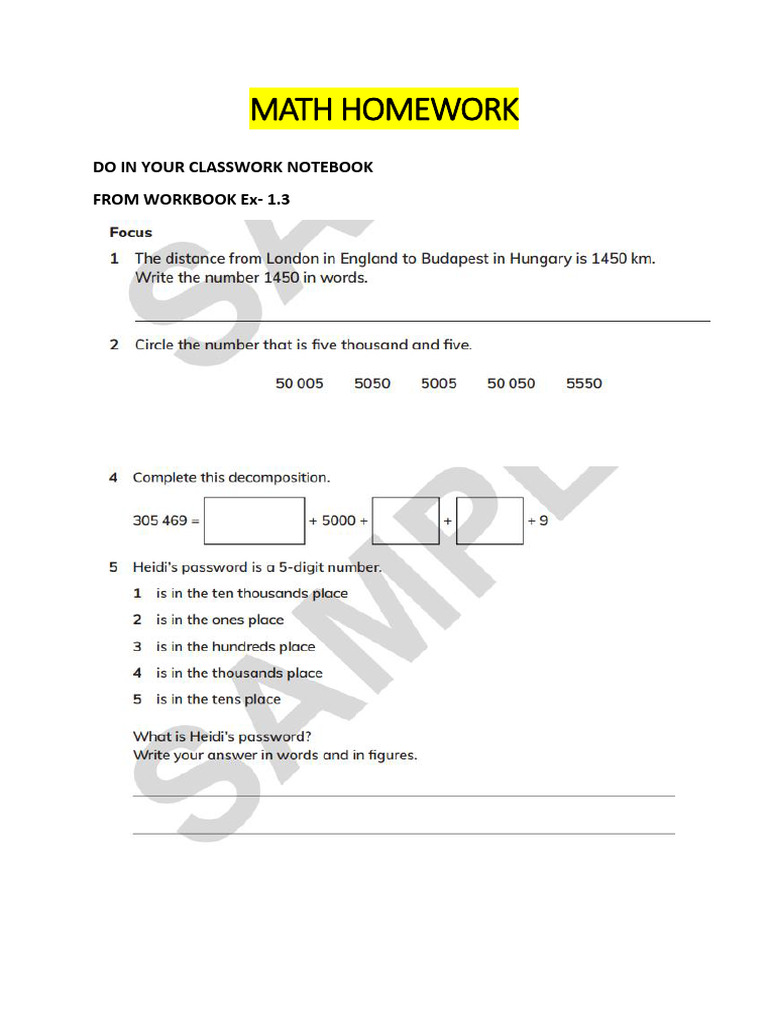 Math Homework Sheets