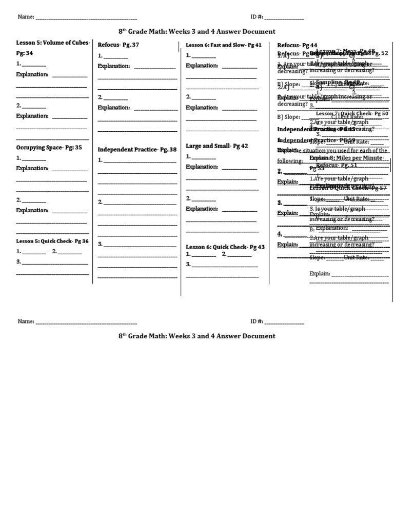 8th Grade Math Weeks 3 and 4 Answer Documnent | PDF | Nature | Teaching ...