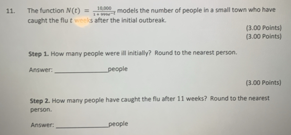Solved: The function N(t)= (10,000)/1+999e^(-t) models the number of ...