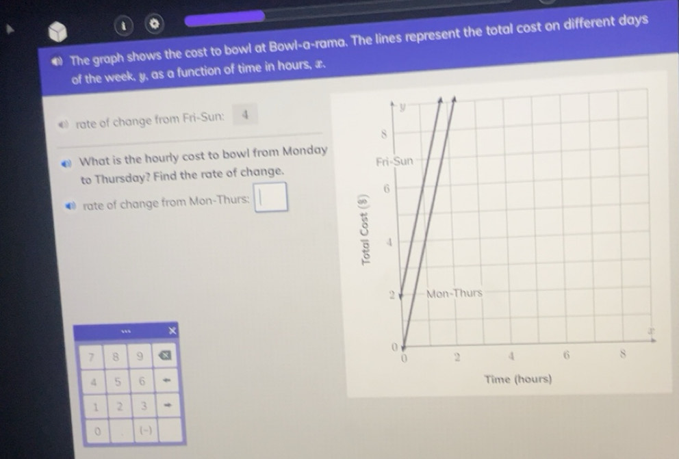 Solved: The graph shows the cost to bowl at Bowl-a-rama. The lines ...