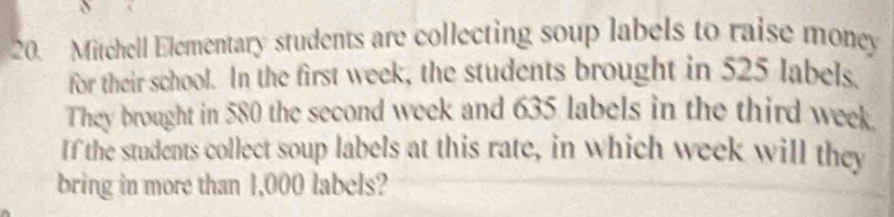 Solved: Mitchell Elementary students are collecting soup labels to ...