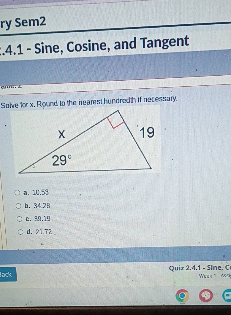 Solved: ry Sem2 1.4.1 - Sine, Cosine, and Tangent e Solve for x. Round ...