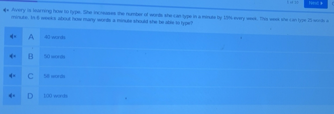 Solved: of 10 Next 》 Avery is learning how to type. She increases the ...