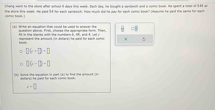 Chang went to the store after school 6 days this week. Each day, he ...