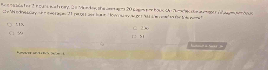 Solved: Sue reads for 2 hours each day, On Monday, she averages 20 ...
