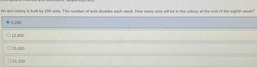 An ant colony is built by 200 ants, The number of ants doubles each ...