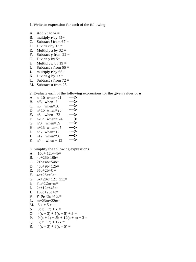 Free Intermediate Algebra Worksheets With Answers Intermediate Algebra