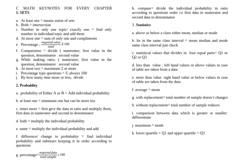 C Math Keynotes For Every Chapter | PDF | Mean | Mode (Statistics)