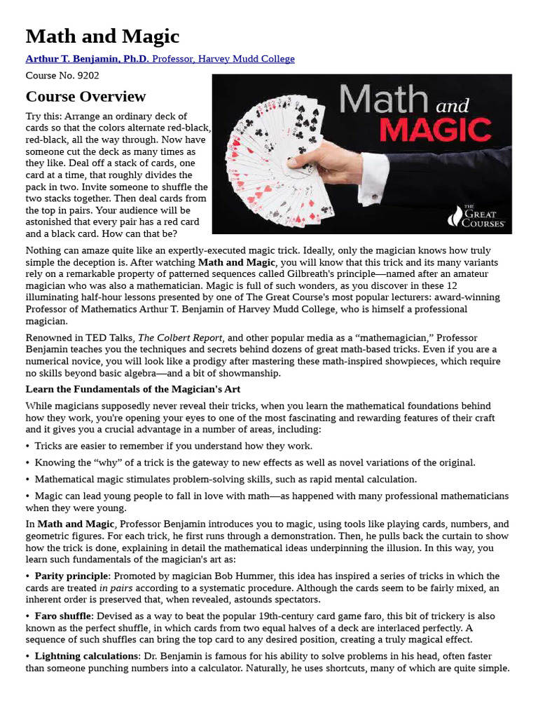 Online Course: Math and Magic from The Great Courses Plus | Class Central